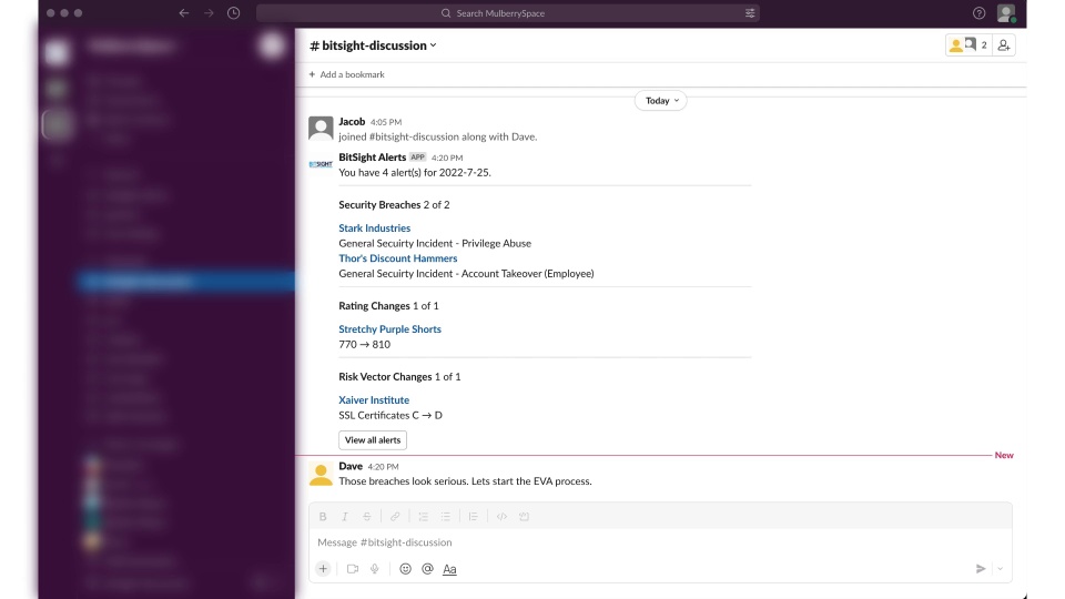 - Access quickly the Bitsight platform for a deep dive on rating changes